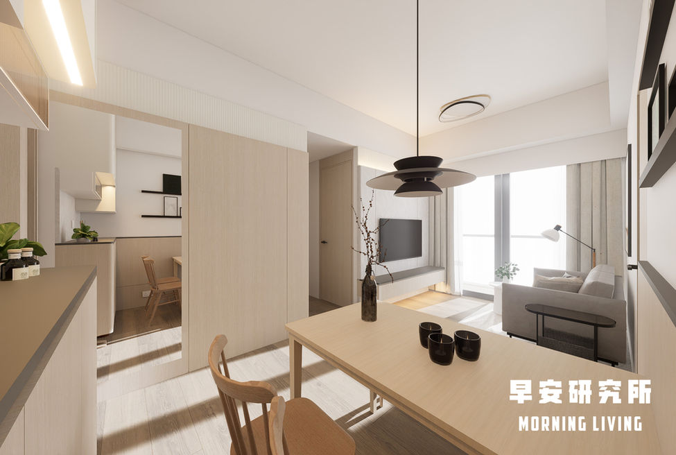 本單位設計靈感來自Japandi風格,揉合日式禪意與北歐簡約,善用天然光源與木紋材質,締造柔和靜謐的家居氛圍。